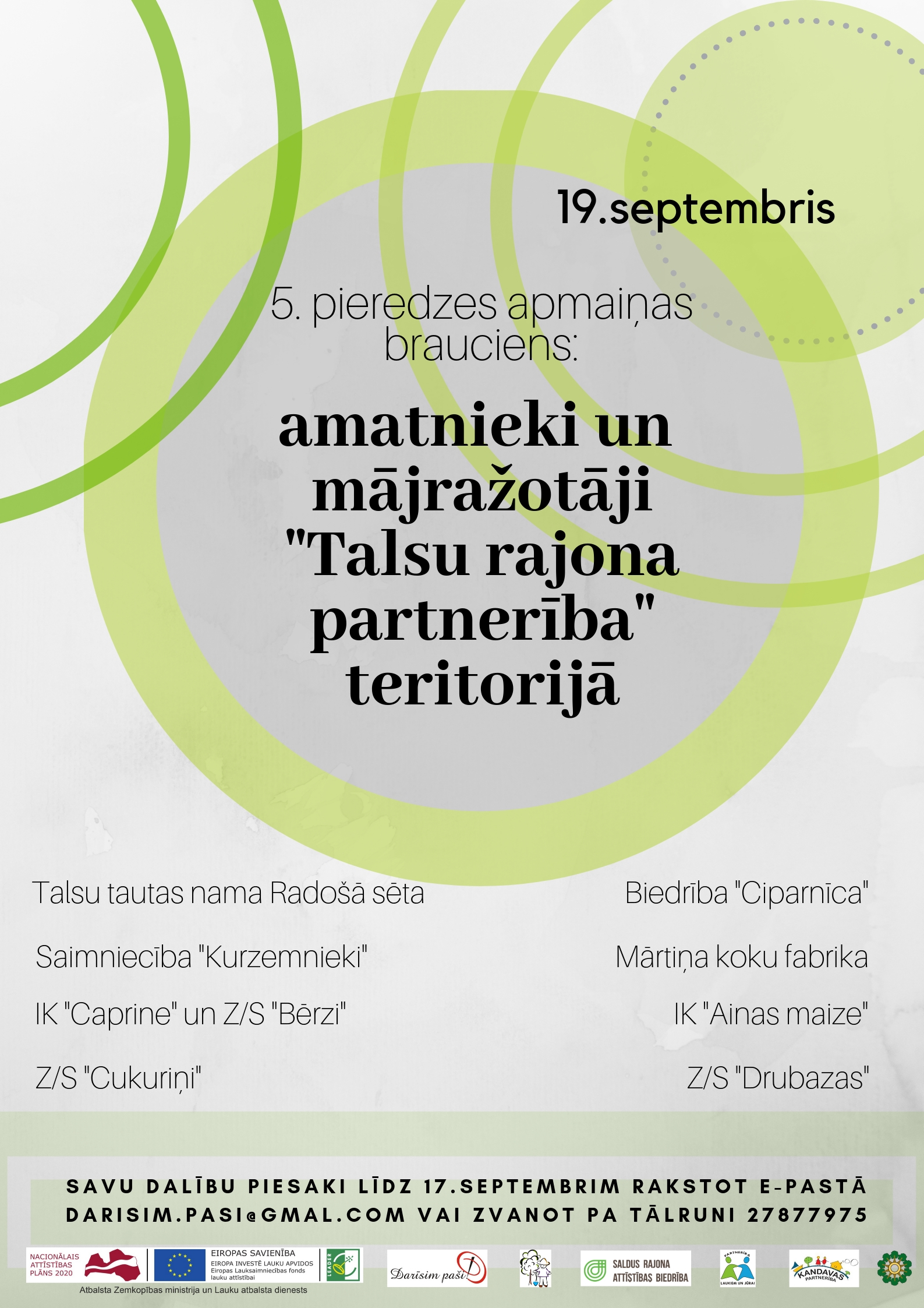 19.septembrī pieredzes apmaiņas brauciens “Talsu rajona partnerība” teritorijā