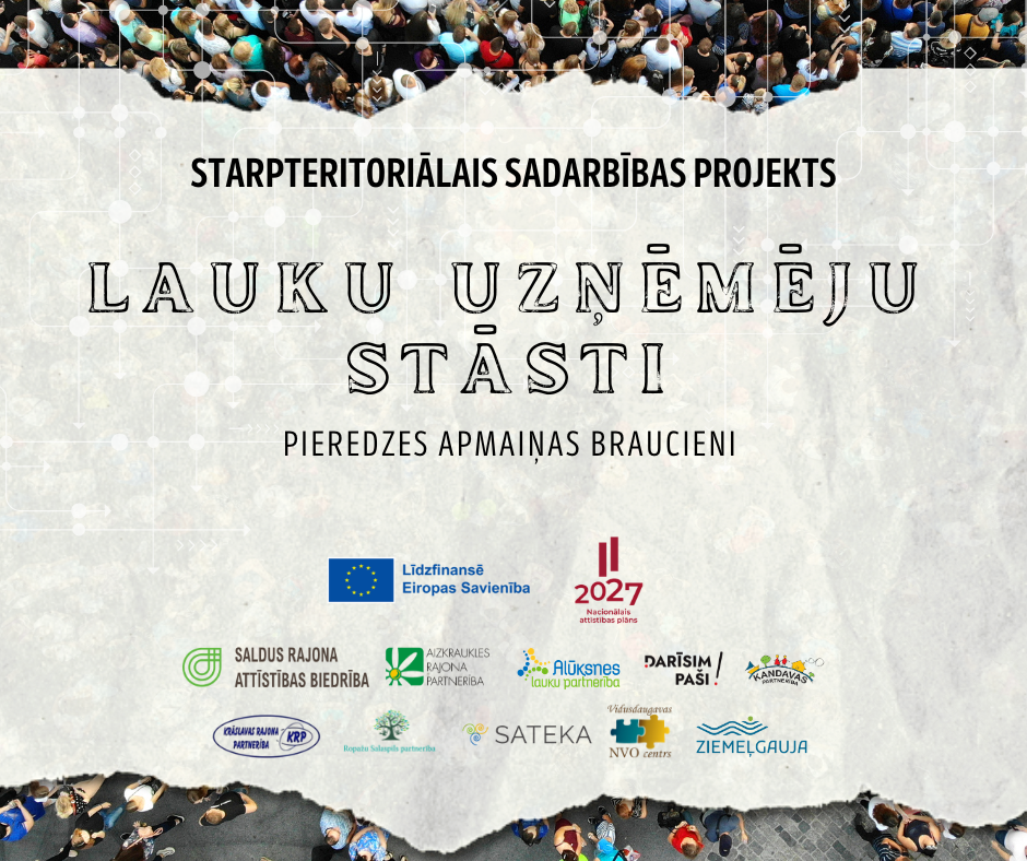 Biedrība “Saldus rajona attīstības biedrība” sadarbībā ar 9 Latvijas vietējām rīcības grupām – “Darīsim paši!”, “Lauku partnerība ZIEMEĻGAUJA”, “SATEKA”, “Vidusdaugavas NVO centrs”, “Kandavas Partnerība”, “Alūksnes lauku partnerība”, “Krāslavas rajona partnerība”, “Ropažu Salaspils partnerība” un “Aizkraukles rajona partnerība” – plāno īstenot starpteritoriālu sadarbības projektu “Lauku uzņēmēju stāsti”.