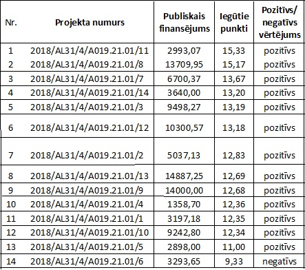 - 13 projektu pieteikumi ieguvuši pozitīvu atzinumu;