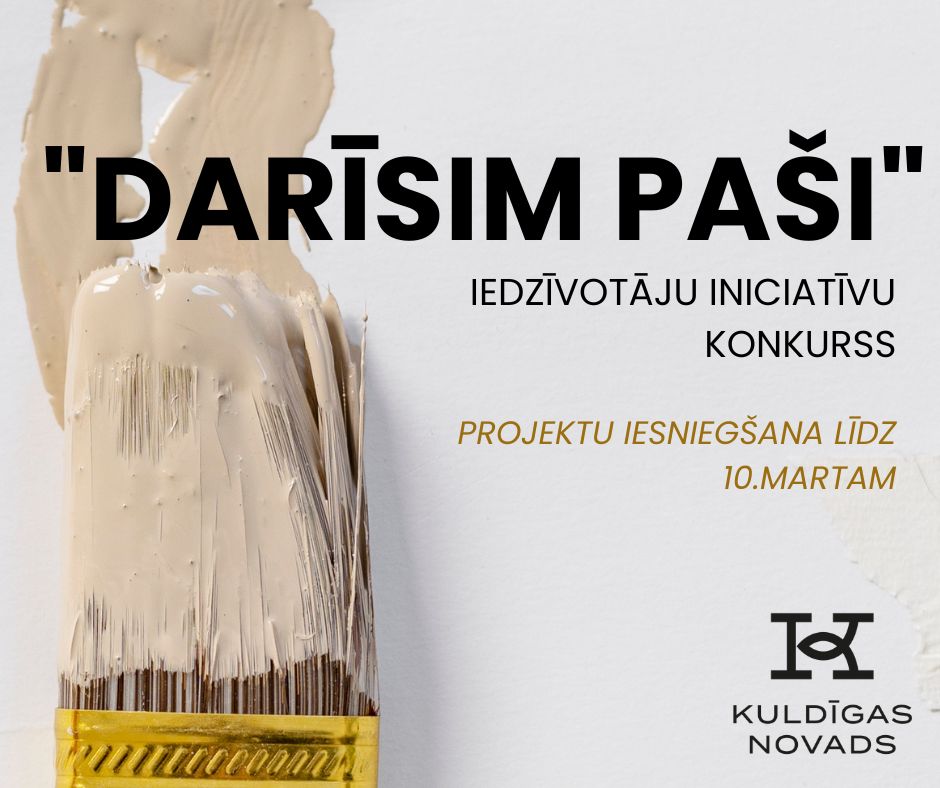 Kuldīgas novada pašvaldība jau 19.reizi aicina iedzīvotāju grupas un nevalstiskās organizācijas iesniegt idejas projektu konkursā “Darīsim paši”, lai kopīgi uzlabotu publisko vidi un dzīves kvalitāti Kuldīgas novadā.