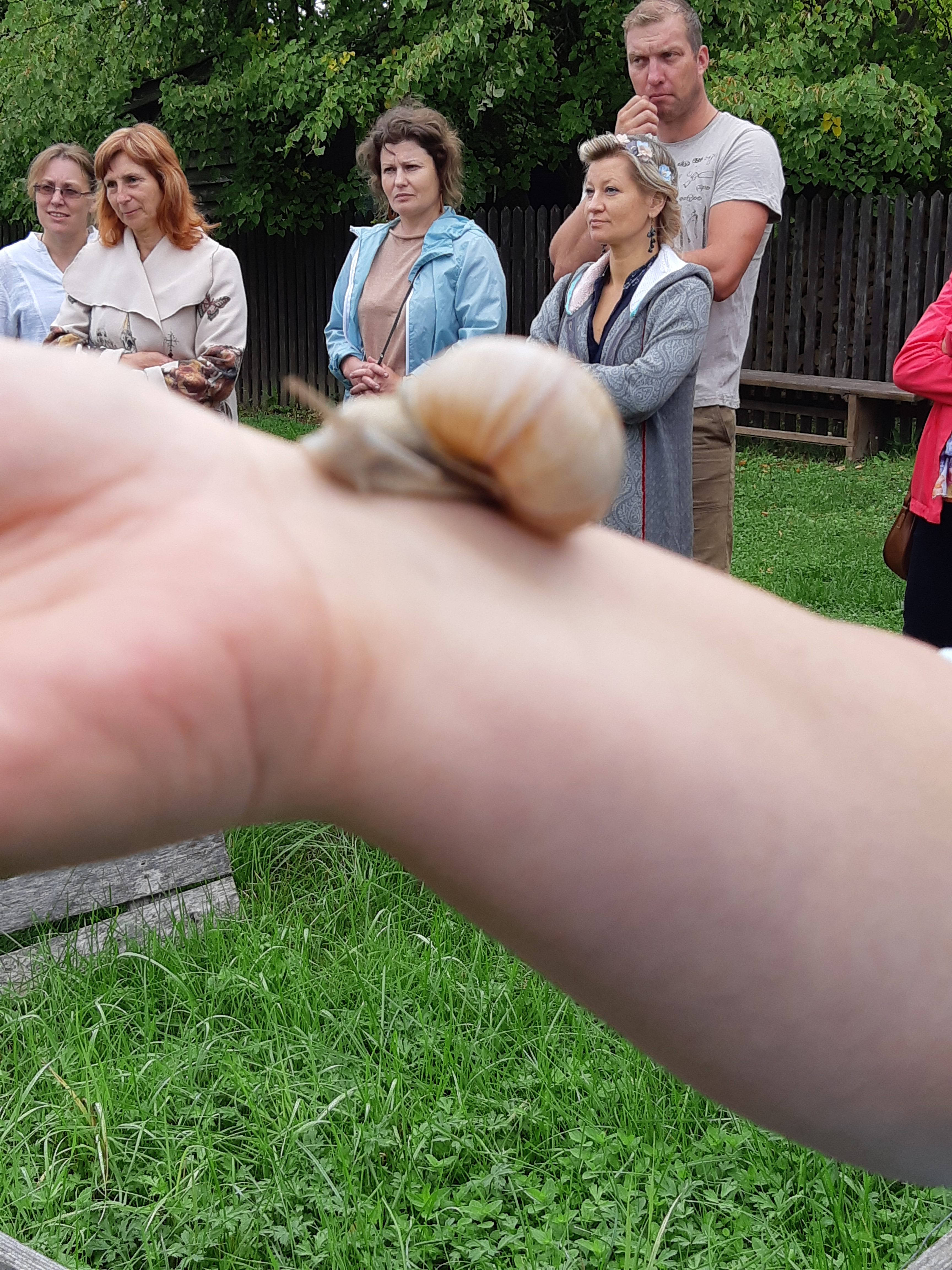 Šoreiz pieredzes apmaiņu uzsākām ar lauku mājas “Kangari” apmeklējumu, kurā tās saimniece Antra Gaisa dalījās savās zināšanās un pieredzē gliemežu audzēšanā un kā no pašas izaudzētiem augļiem un ogām gatavot veselīgus našķus un kārumus, kuri tiek piedāvāti lauku mājas apmeklētajiem un organizēta tirdzniecība dažādos tirdziņos.